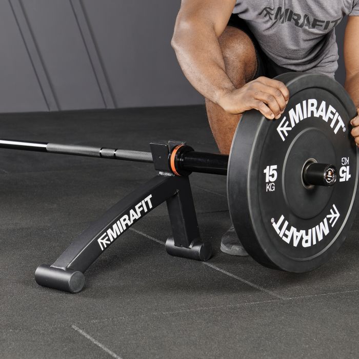 A barbell jack is a simple lever tool that makes loading and unloading the barbell much easier. It is mostly used during deadlifts where heavy weight is resting on the floor. The lever helps you lift the barbell slightly off the ground. This way, you can load and unload the barbell with greater ease. It saves time, conserves energy for actual lifting and it is safer (no crushed fingers). It is also more efficient than rolling the weight plates over a change plate.